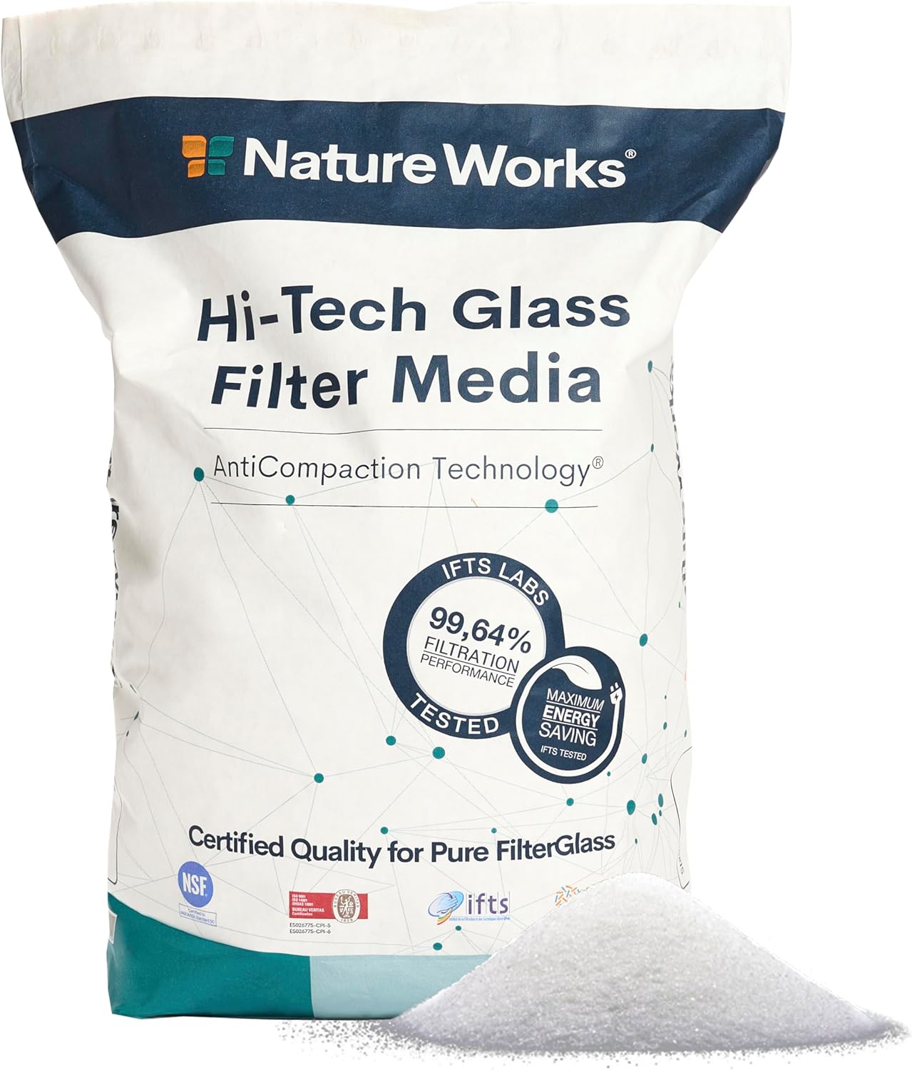 La sabbia filtrante è la soluzione tradizionale e, per buoni motivi, è ancora molto diffusa. Uno dei suoi punti di forza è la semplicità: è facile da reperire, la sua installazione è immediata nei filtri progettati per sabbia e non richiede particolari adattamenti. Per chi ha un impianto installato da anni con laterali e tubazioni dimensionati per sabbia, continuare con questo media mantiene l’intero sistema nella sua configurazione più efficiente senza spese addizionali di adattamento.